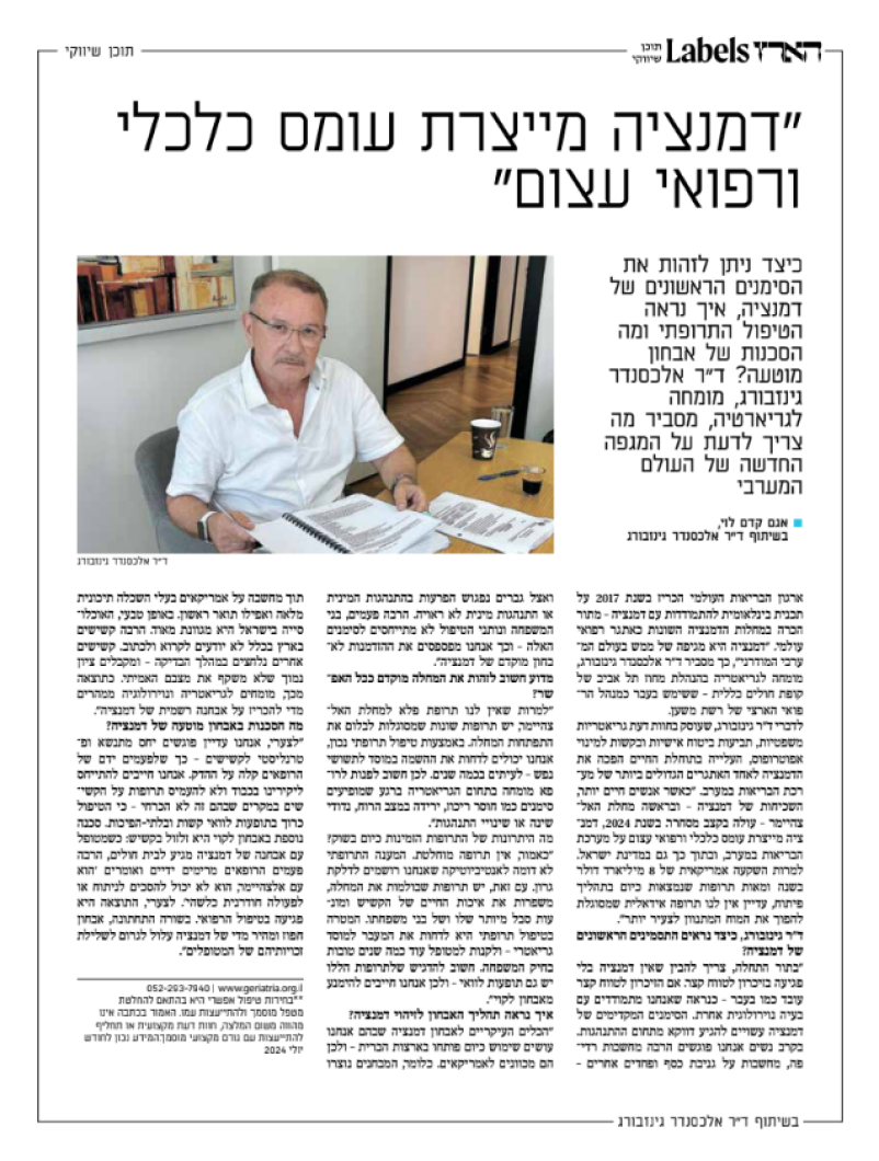 לאחרונה הופיע ד”ר גינזבורג בתקשורת, כולל כתבות בערוץ 12 ובערוץ 13, שם דיבר בהרחבה על היתרונות הרפואיים של שמן ה-CBD והחשיבות של מוצרים מפוקחים ואיכותיים בטיפול במגוון רחב של מחלות. בנוסף, בראיון בעיתון הארץ, הדגיש ד”ר גינזבורג את היתרונות של CBD עבור קשישים, כולל הפחתת כאבים כרוניים ושיפור תפקודים יומיומיים.